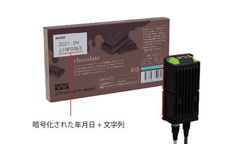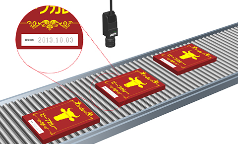 印字検査用画像センサGVS-OCRで「賞味期限」と「暗号化された年月日」の印字を検査します。