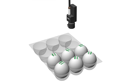 画像センサMVS-PM-Rで卵の豆シールの有無を検査します。
