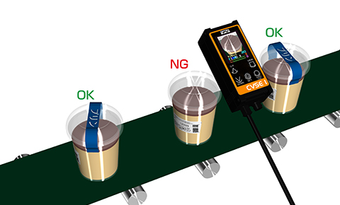 プリン等の透明容器のフタの有無を簡単色面積センサCVSE1で確認します。