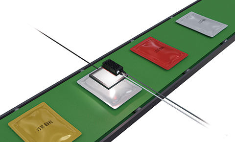色判別能力は15,000色と高分解能ですので、同系色のラベルでも誤判定なく判別可能。また焦点深度が深いので、容器のバタツキや高さの影響に強い検出を実現しています。