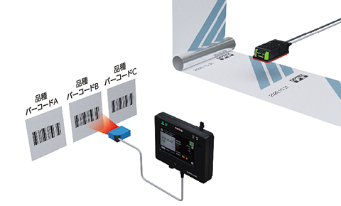 例えば、品種バーコードAは賞味期限7日、Bでは14日、Cでは30日という設定をしておけば、それぞれのバーコードをスキャンするだけで印字検査用画像センサを瞬時に正しい設定にすることが可能。現場での単純な設定ミスを防止するとともに、賞味期限の印字検査をより確実なものとします。