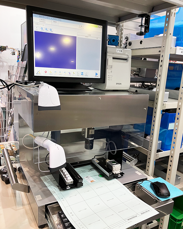 お弁当やお惣菜に貼付する食品表示ラベルの検査デモンストレーションを行いました。卓上機ではラベル台帳を検査するデモンストレーションを実施しました。