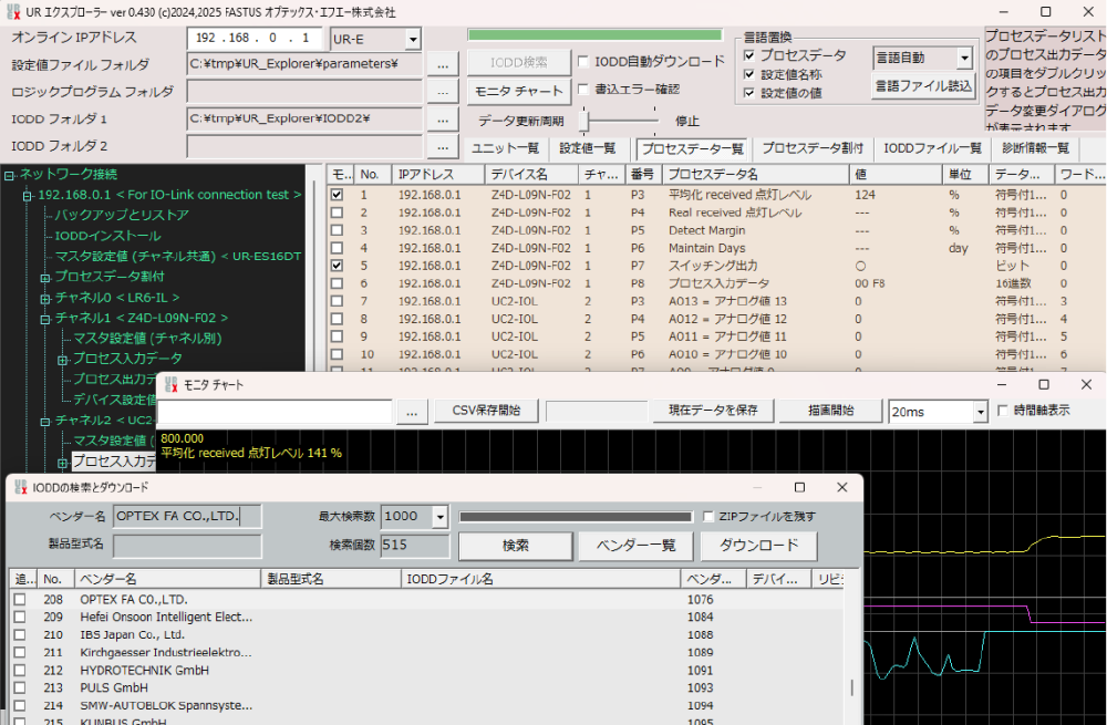 また、既存のUR-Master Managerの機能強化版PCツールという位置づけですので、IO-Linkデバイスの設定値編集やPC側への設定値情報ファイルのバックアップなど基本的な機能はいずれも問題なくご利用いただけます。