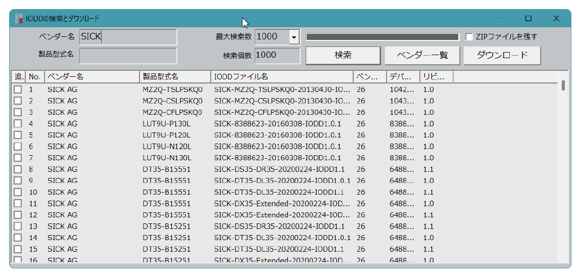 | IODDファイルの検索・ダウンロード | ベンダーや型式ごとにIODDファイルを一括でダウンロードし、インストールまで行うことができます。 |