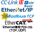 EtherNet/IP (初期値)、Ethernet & Modbus/TCP、 CC-Link IE Field Basic、EtherCAT(機能内切換) |
