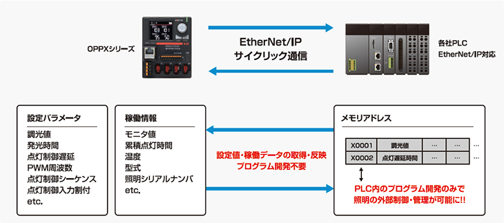 EtherNet/IP通信により、従来より簡単にデータのやり取りが可能