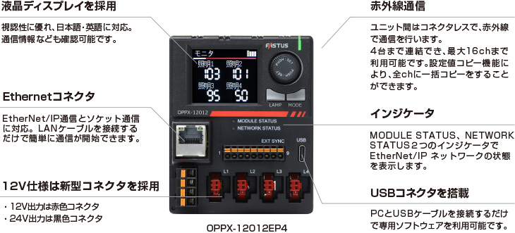 OPPXシリーズは、12V入力照明、24V入力照明に対応し、他社製のLED照明も接続可能です。