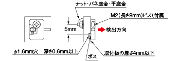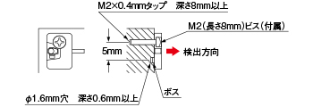 透過型ファイバは、同一形状です。取り付ける際は、取付ビス用の穴とボス用の穴の位置にご注意ください。