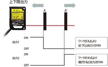 制御出力の数によって対応できる用途が変わります。例えば1系統の場合、設定距離よりも物体が近い・遠いのどちらかを出力しますが、2系統であれば、その両方を区別して出力でき、従来センサが2台必要だった用途に1台で対応できます。
