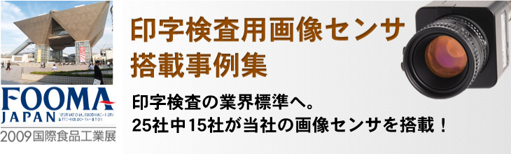 2009国際食品工業展(FOOMA)会場では、印字検査機を出展したメーカー25社中15社が、オプテックス・エフエーの印字検査用画像センサを搭載いただき、業界標準機を実証しました。