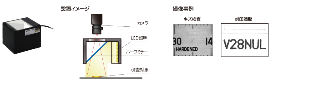 明視野照明と呼ばれる手法で、平面ワークのキズ検出などにご利用いただけます。