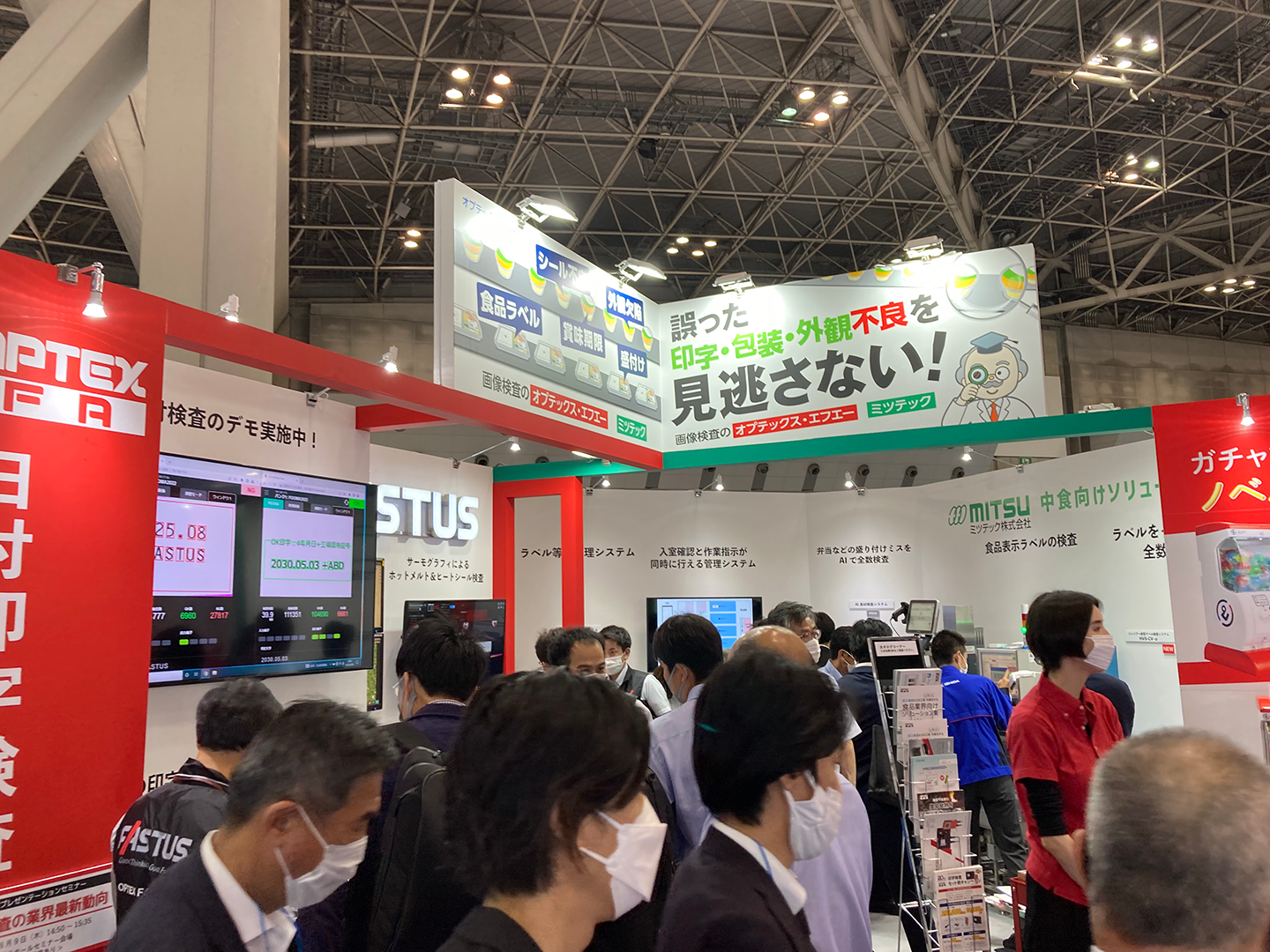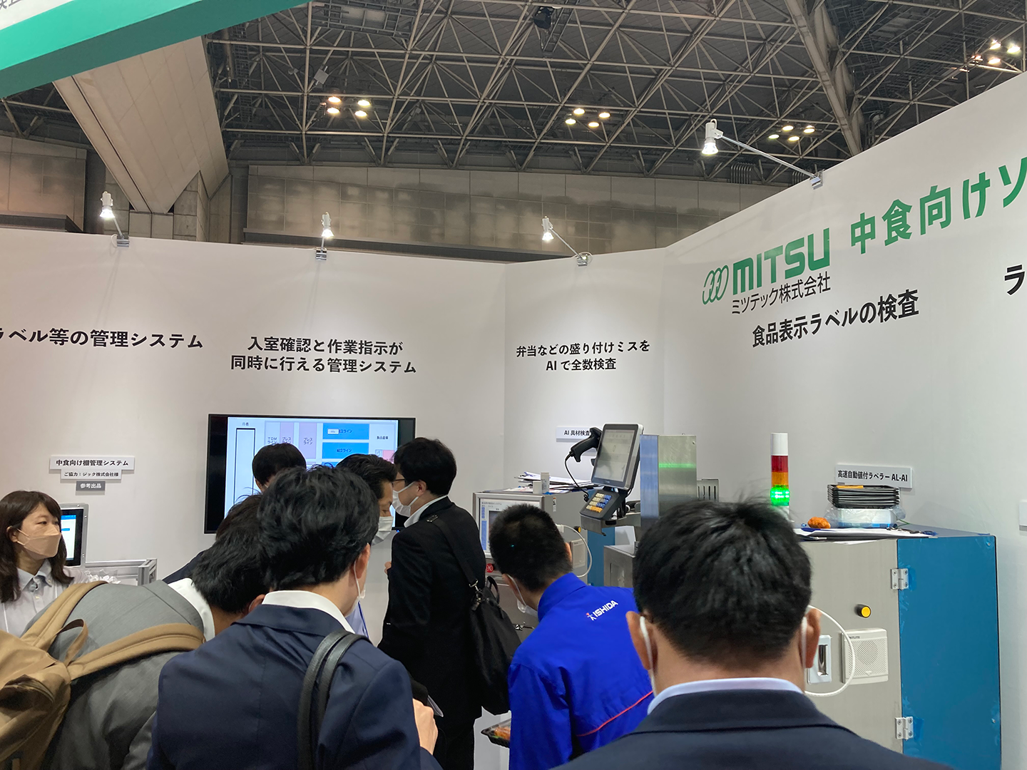 ミツテックコーナーでは、ラベル検査に加え、AI具材検査やラベル管理システム、作業指示システムなど中食業界向けの新たなソリューションを紹介。