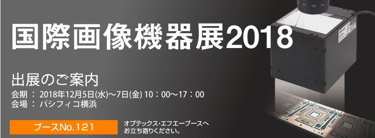 国際画像機器展2018に出展いたします。会期:2018年12⽉5⽇(⽔)〜7⽇(⾦)10:00〜17:00 会場:パシフィコ横浜ブースNo.121