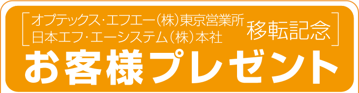 このたびのオプテックス・エフエー(株)東京営業所ならびに 日本エフ・エーシステム(株)本社の移転を記念いたしまして、 日頃ご愛顧いただいておりますお客様にプレゼントをご用意いたしました。 ぜひお気軽にご応募ください!