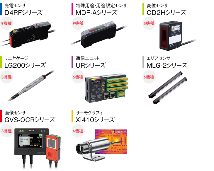 INDEXから、ご要望に合った主⼒のセンサの種類(カテゴリー)を探ていただけます。