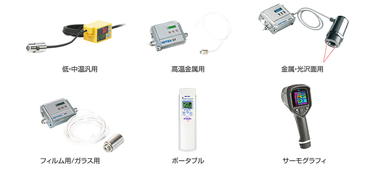 オプテックスの非接触温度計(放射温度計)は、赤外線技術により測定物に触れることなく素早く正確に温度を測定します。製造ラインや装置組込に適した「設置型」から、持ち運びに便利な「ポータブル型」まで業界トップクラスのラインナップを誇り、幅広い分野でご利用いただいています。