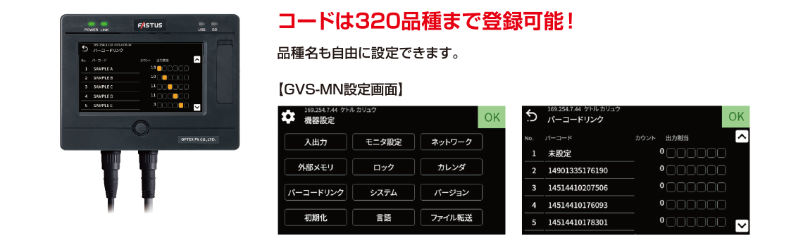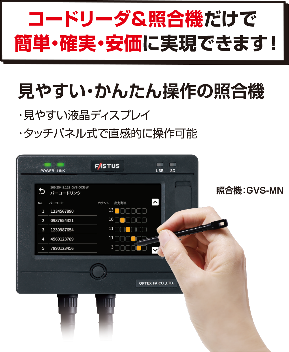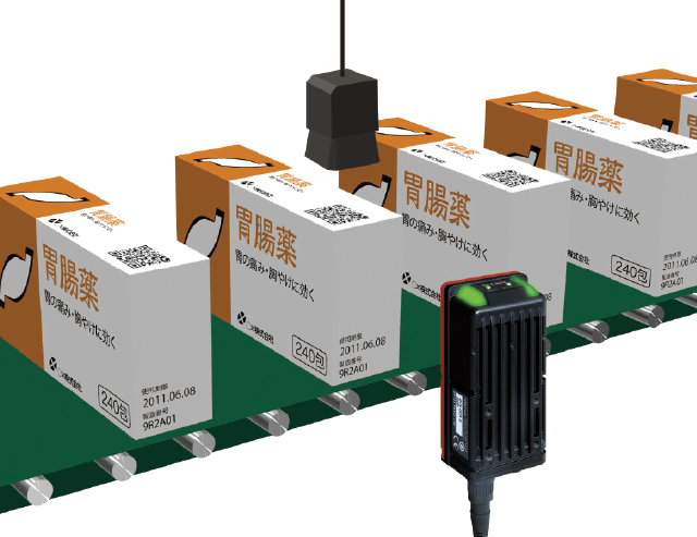 印字検査用画像センサでの読取結果とコードリーダの読取結果の照合が可能。 PLCなしのシンプルな機器構成で実現できます。