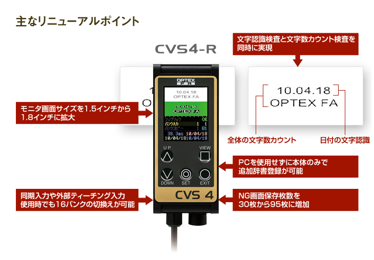 オプテックス・エフエーの文字認識画像センサは印字検査機において世界No.1の累計出荷台数を誇ります(自社調べ)。なかでもCVS4は世界で最も売れている印字検査のスタンダード機です。