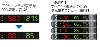 受光量の変化が感覚的に理解でき、連結使用時にも簡単に異常を見分けられます。