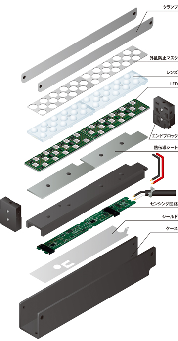 センサを内蔵しても高さ寸法をわずか3.5mmプラスに抑えました。FALUXによる明るさ変動の補正や優れた光学特性はそのままお使いいただけます。