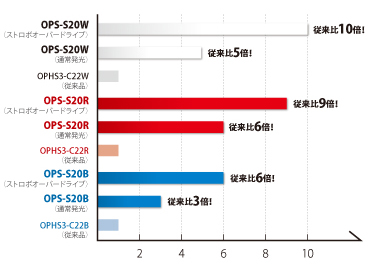 明るさ倍率( 各色とも従来品OPHS3シリーズを1とした場合)