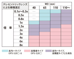 高倍率/長距離レンズには高輝度タイプ、低倍率/短距離レンズには高均一タイプが有効です。