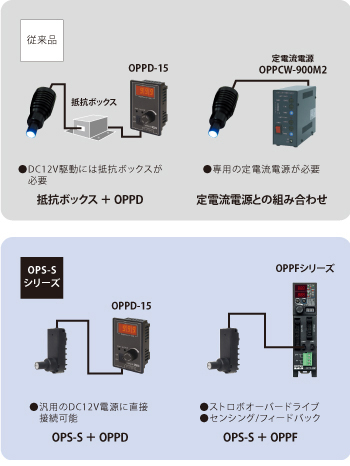 従来のスポット照明は定電流駆動が主流で、オーバードライブできるストロボ電源がありませんでしたが、