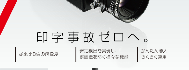 新世代印字検査カメラとして食品製造現場の幅広い印字検査ニーズに対応するとともに、業界のプライスリーダーとして貴社の導入コスト低減に大きく貢献します。