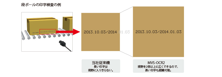 一列に長い印字や、通過位置が一定しないラインでの印字検査を可能にしました。