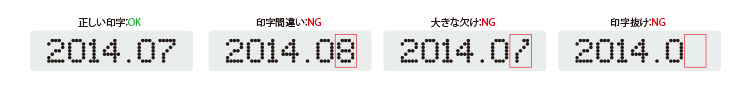 読み取った文字をセンサ内部の辞書データと比較し、その中から最も近い文字を選択、その選択した文字が全て正しければOK、1文字でも一致しなかったらNGとすることが可能。印字間違いや文字欠け/文字抜けといった印字不良を未然に防止することができます。