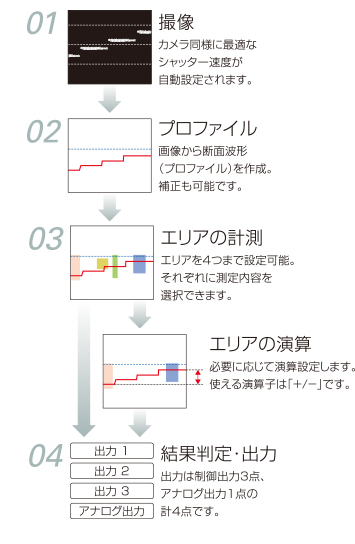 LSシリーズでは、「撮像」「プロファイル」「エリアの計測・演算」