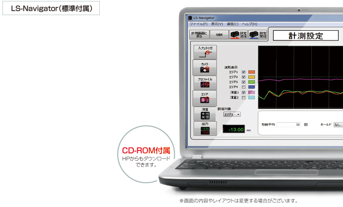 通信速度に関わらず全サンプリングデータを取得でき、「LS-Navigator」を使用することでプログラムレスにてデータ取得が可能となります。