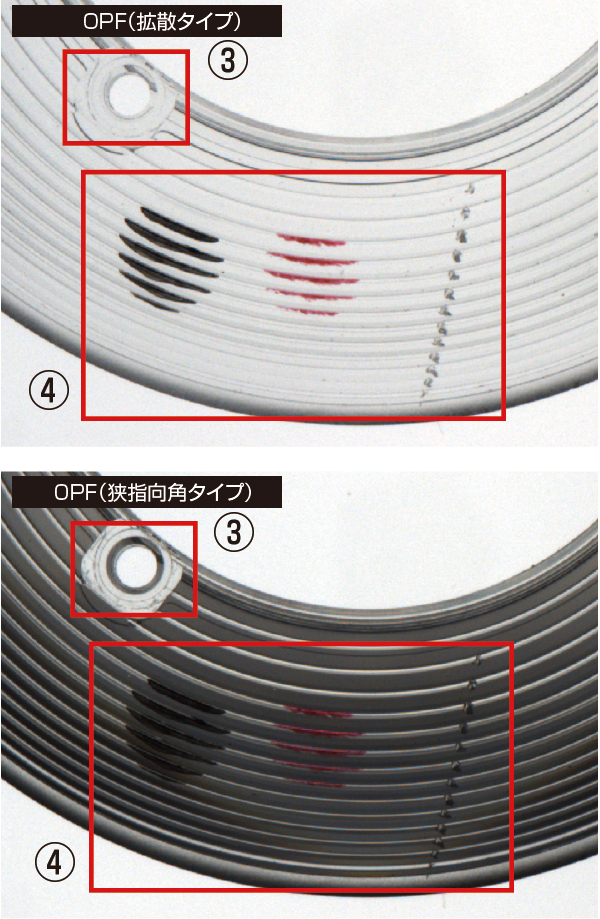 狭指向角タイプは、プリズムシートにより周囲に広がる光を前方に集光することで従来比4倍の輝度を実現しました。
