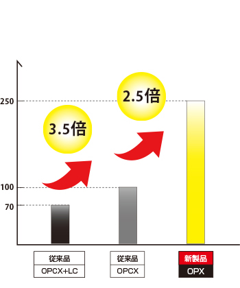 OPXシリーズは、狭指向角光源と放熱性に優れたアルミ筐体の採用により、従来比2.5倍の明るさを実現しました。