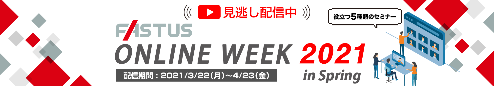 オプテックス・エフエーでは、3月に開催しましたオンラインセミナーイベント「FASTUS ONLINE WEEK 2021」の 見逃し配信を行います。
