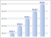 上下限設定が可能な5つの制御出力を装備。しかも出力を測定範囲内で任意に設定することができます。