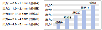 上下限設定が可能な5つのコンパレータ出力を装備。サイズによる製品の仕分けやワークの種類の判別などに大変便利な機能です。