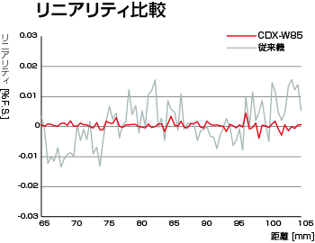 新開発の独自測定アルゴリズムによりリニアリティを抑えることに成功。徹底的にアルゴリズムの見直しを図り、超高精度測定を達成しました。
