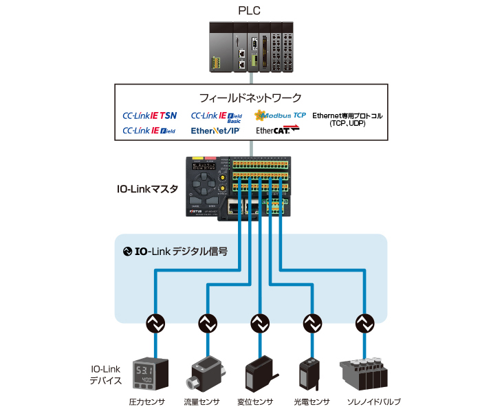 IO-Linkはセンサやアクチュエータをデジタル信号で上位(ネットワーク)に接続する技術です。