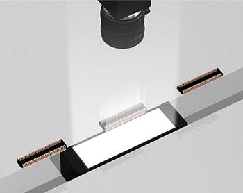 例えば、長さ40mm ほどの細長いコネクタ部品の検査に同軸照明OPXシリーズを使う場合、発光面51×51mmのOPX-S50□2が必要ですが、ワークサイズに対して必要以上に大きなサイズの照明でした。