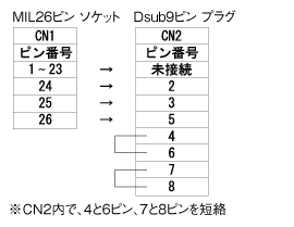 RS232通信ケーブル(PC用、MIL26ピン-Dsub9ピンソケット)