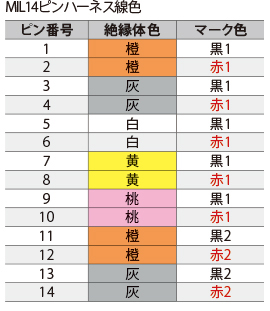 外部点灯制御用ケーブル(MIL14ピンソケット-バラ線)