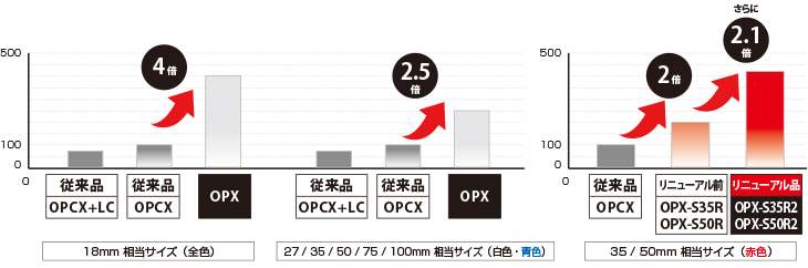 OPXシリーズは、従来品の最大4倍の明るさアップを実現。