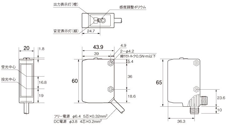 ■ センサの配線と高圧線・動力線との同一配管を行われるとノイズにより誤動作、破損の原因となる場合がありますので、別配線としてください。
