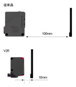 センサと反射ミラーの距離が従来品の1/10まで近づけられるため、アプリケーションの幅も一層広がります。