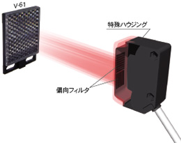 偏光フィルタを内蔵しているので、鏡面体でも安定した検出が可能です。