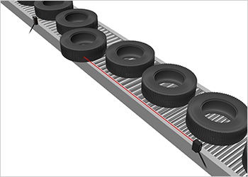 振動するタイヤ搬送ラインでのはみ出し検出