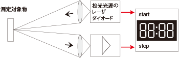 センサ内部の電子回路により定義されたパルス幅のレーザ光が投光され、対象物