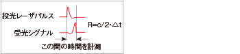 によって反射、受光されます。投光と受光の間には、距離に比例した時間差が生じ