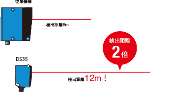 従来比2倍となる検出距離12m※を達成。長距離検出のアプリケーションがさらに広がります。※白色紙にて